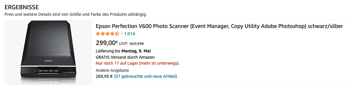 스캐너 또한 미국직구가 각장 저렴하며, 스캐너의 경우에는 독일과 한국이 비슷한 가격대를 형성하고 있습니다. 독일은 이상하게 프린터, 스캐너 류가 저렴한 편입니다. 다른 물건에 비해서 저렴하며 따라서 한국과 비슷한 편입니다. 한국에서는 이제 모든 게 디지털화돼서 관공서나 서류 작업을 할 때 대부분 디지털로 하지만, 독일은 아직도 우편으로 하기 때문에 수요가 상대적으로 많아 저렴한 것인지, 세금이 다른 물건과는 다르게 책정되기 때문인지는 모르겠습니다.