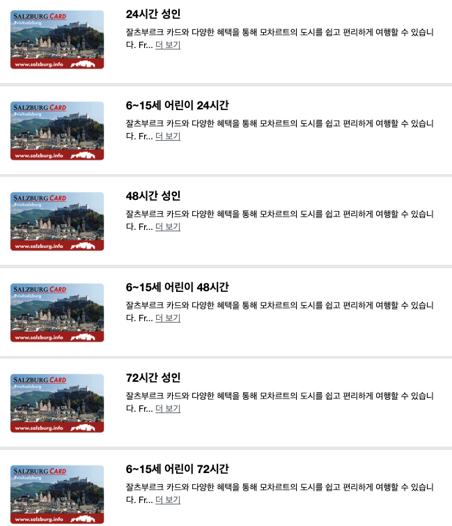 - 잘츠부르크 카드 성인 1매 + 아동 1매 구성 시, 최대 절약 가능